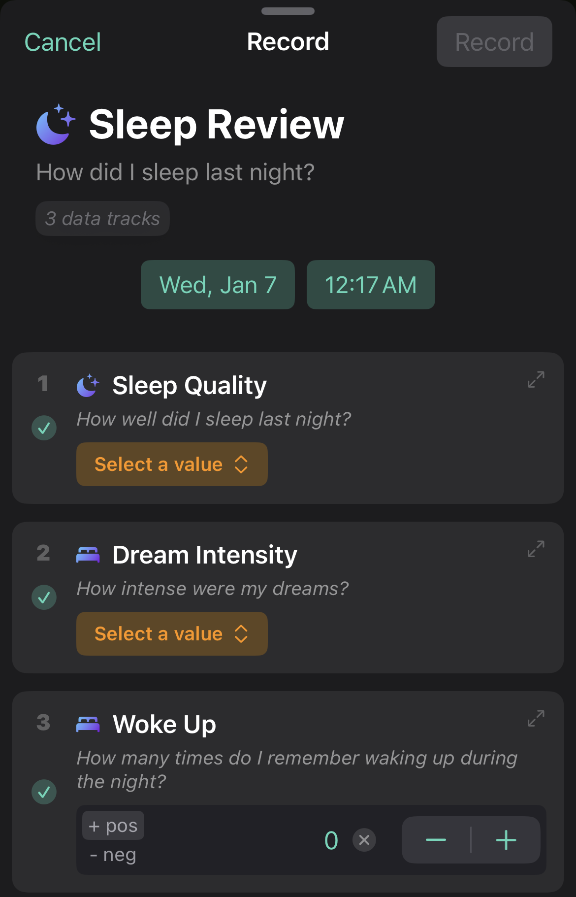 Core recipe categories Metabolic clarity — CGM + meals + movement + sleep Late‑Meal Shift (14 days): move dinner 60–90 min earlier; watch spikes and sleep. Walk‑After‑Meals (10 days): 10–15 min walks post‑meal; compare crash frequency. Sleep & recovery — HRV/RHR + evening routine + light Evening Wind‑Down (14 days): screens down, dim lights, last caffeine 8h pre‑bed. HRV Rescue (10 days): two low‑stim evenings before long training/launch. Focus & energy — Focus Sessions + calendar + tags Morning Monotask (10 days): two 45‑min blocks before noon; track interruptions. Commute Shift (14 days): swap late‑night work for AM commute reading/light. Training & endurance — HRV + training load + protein Protein Floor (21 days): minimum grams/day; see recovery and session quality. Long‑Run Buffer (14 days): schedule buffers before/after; compare HRV dips. Travel resilience — Time zone + light + meal timing Jet Lag Plan (7–10 days): AM outdoor light + earlier local meals; track rebound. Social Nights Guardrails (10 days): cap back‑to‑back late nights; watch next‑day energy. What success looks like “Moving dinner earlier cut my overnight spikes; sleep regularity improved within a week.” “Two low‑stim evenings before my long run stopped the usual HRV crash.” “Morning monotask blocks doubled deep‑work hours; interruptions dropped 30%.” What you get Prebuilt recipes with minimal scopes and clear stepsChecklists & templates (what to track, when to reflect)Then‑vs‑Now comparisons and short auto‑summaries